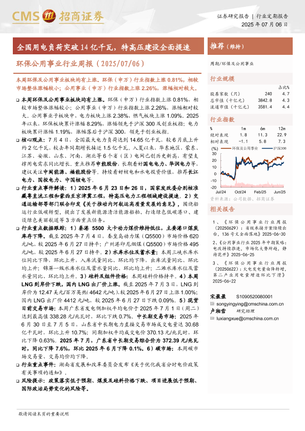 【海通证券】【20250706】环保公用事业行业周报:全国用电负荷突破14亿千瓦,特高压建设全面提速-20页