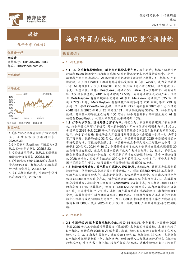 【德邦证券】【20250707】通信行业周报:海内外算力共振,AIDC景气将持续-18页