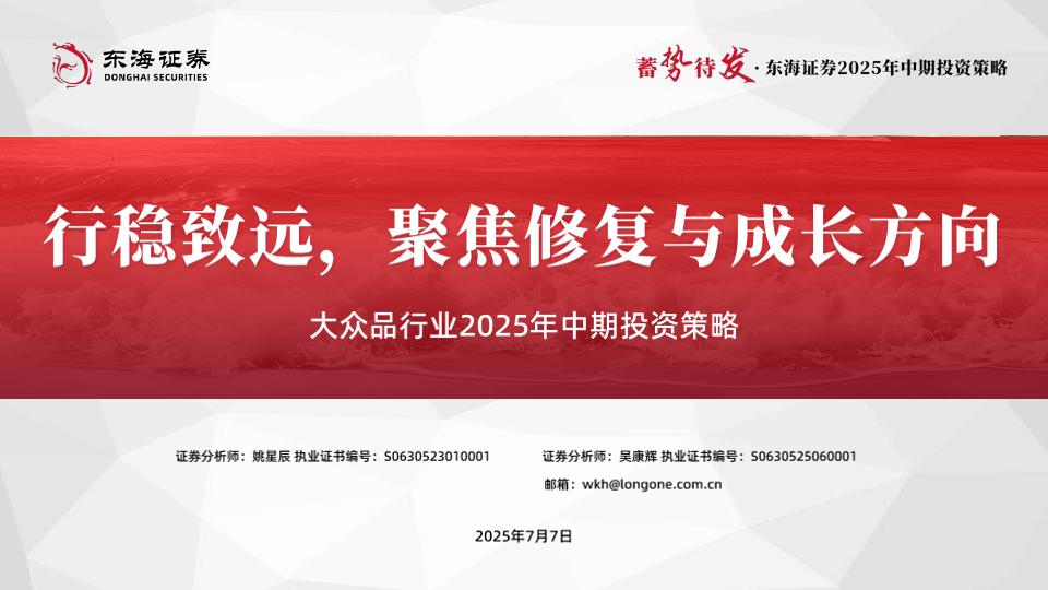 【东海证券】【20250707】大众品行业2025年中期投资策略:行稳致远,聚焦修复与成长方向-34页