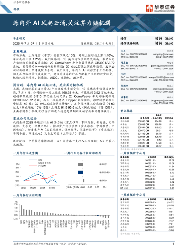 【华泰证券】【20250707】科技行业周报(第二十七周):海内外AI风起云涌,关注算力链机遇-14页