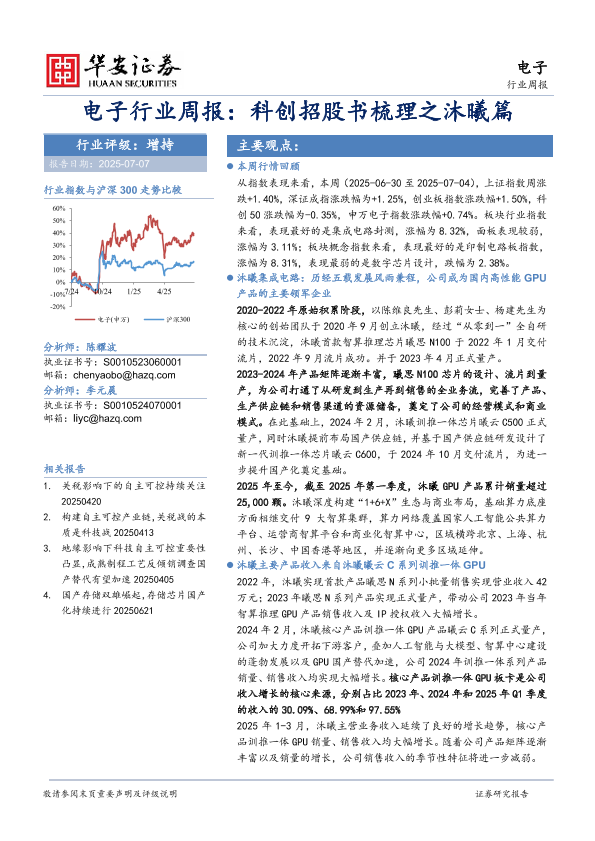 【华安证券】【20250707】电子行业周报:科创招股书梳理之沐曦篇-32页