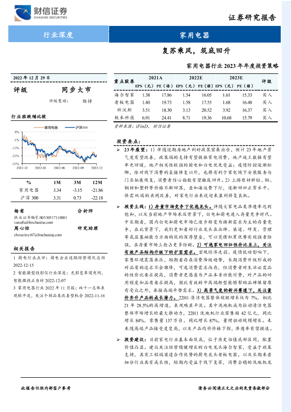 【财信证券】【20221229】家用电器行业2023年年度投资策略:复苏乘风,筑底回升-27页