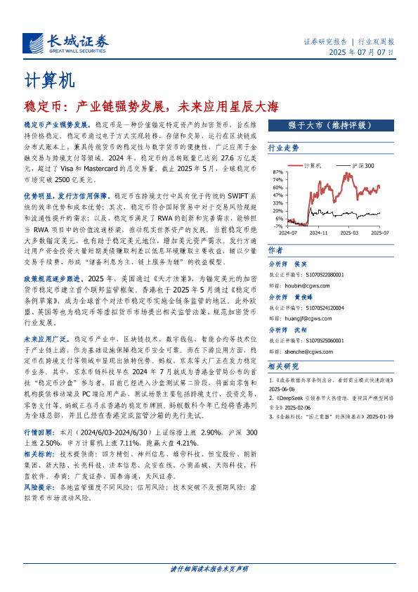 【长城证券】【20250707】计算机行业双周报:稳定币:产业链强势发展,未来应用星辰大海-13页