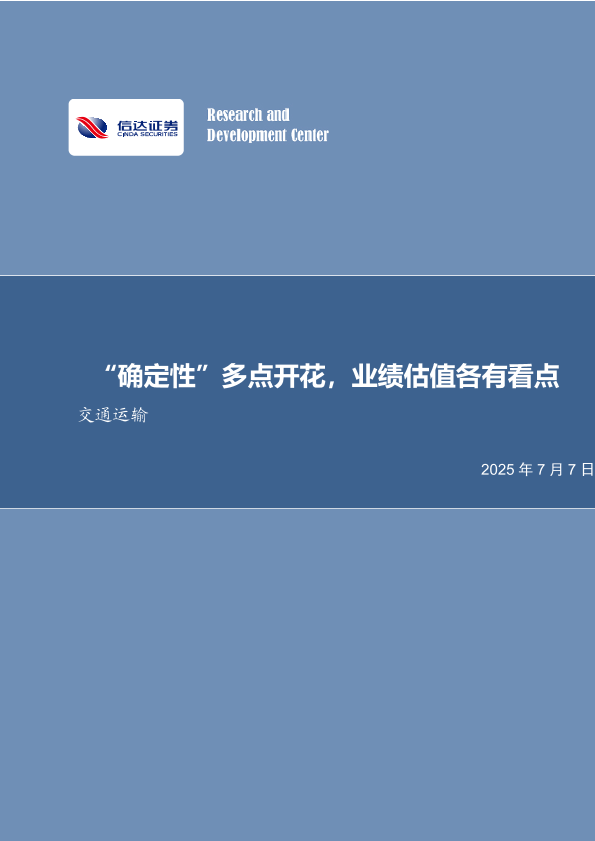 【信达证券】【20250707】交通运输2025年中期策略报告:“确定性”多点开花,业绩估值各有看点-50页