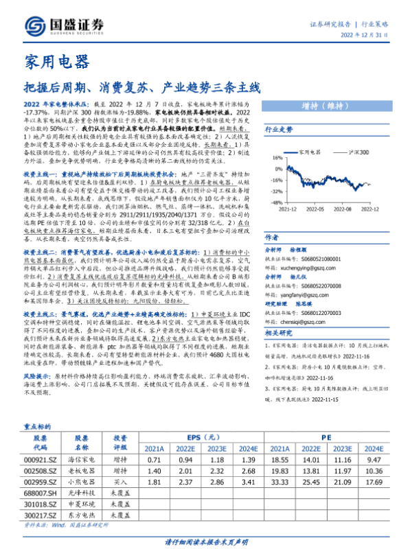 【国盛证券】【20221231】家用电器行业策略:把握后周期、消费复苏、产业趋势三条主线-35页