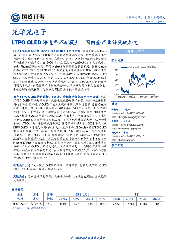 【国盛证券】【20250708】光学光电子行业专题研究:LTPO OLED渗透率不断提升,国内全产业链突破加速-18页