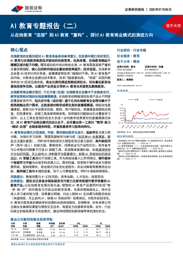 【国信证券】【20250708】AI教育专题报告(二):从在线教育“连接”到AI教育“重构”,探讨AI教育商业模式的演进方向-30页