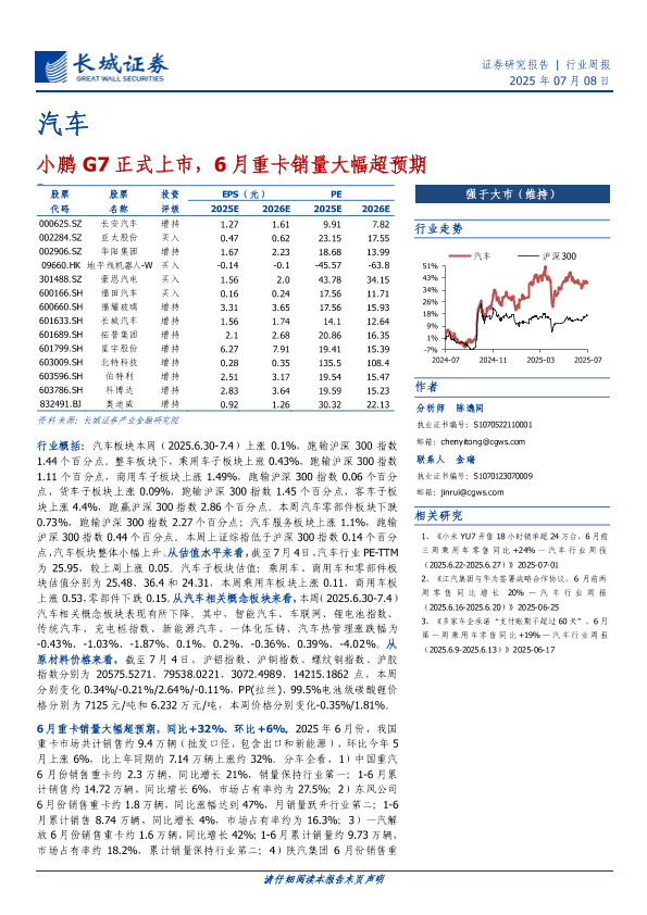 【长城证券】【20250708】小鹏G7正式上市,6月重卡销量大幅超预期-11页