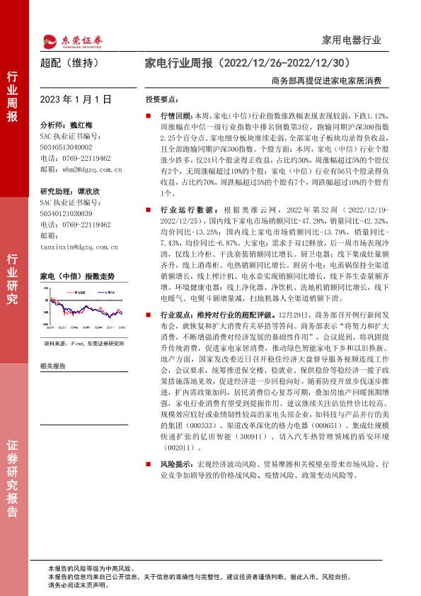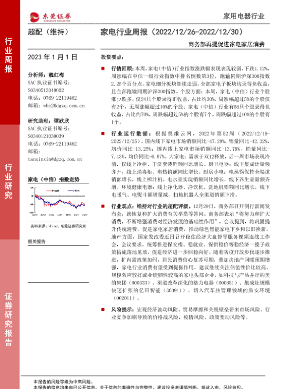 【东莞证券】【20230101】家电行业周报:商务部再提促进家电家居消费-15页