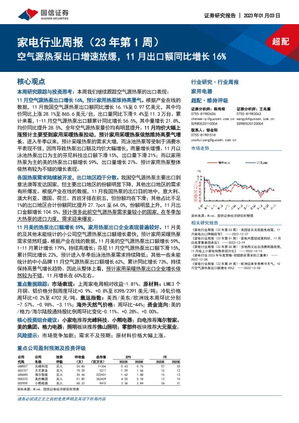 【国信证券】【20230103】家电行业周报(23年第1周):空气源热泵出口增速放缓,11月出口额同比增长16%-15页