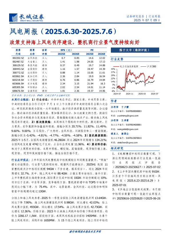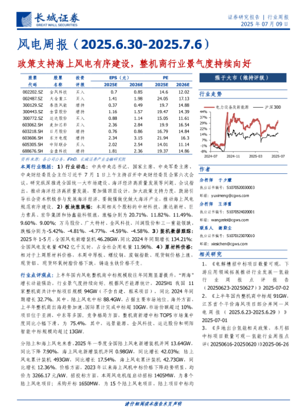 【长城证券】【20250709】风电行业周报:政策支持海上风电有序建设,整机商行业景气度持续向好-13页