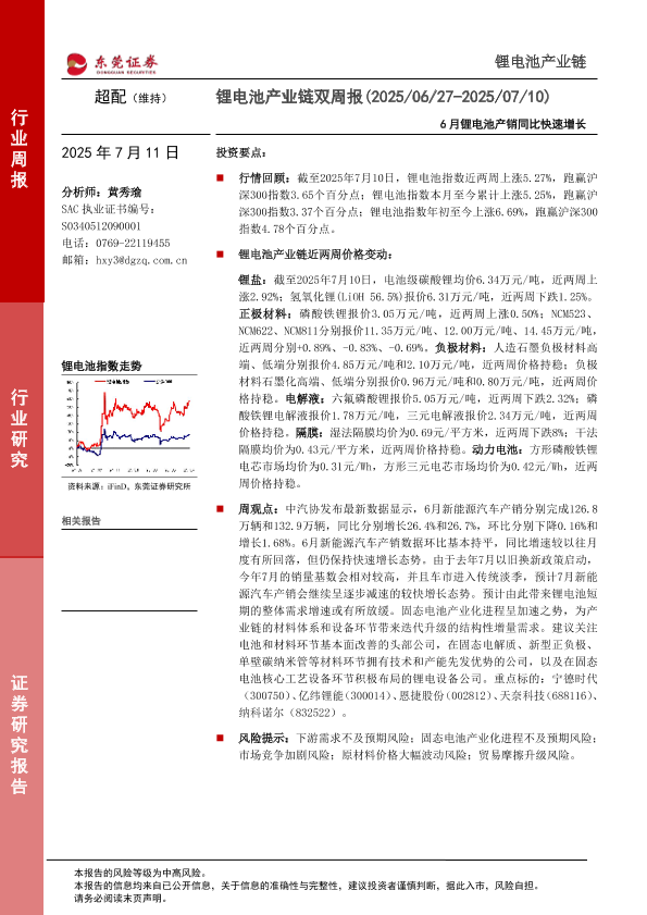 【东莞证券】【20250711】锂电池产业链双周报:6月锂电池产销同比快速增长-13页