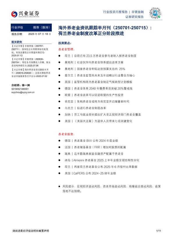 【兴业证券】【20250718】海外养老金资讯跟踪半月刊:荷兰养老金制度改革正分阶段推进-11页