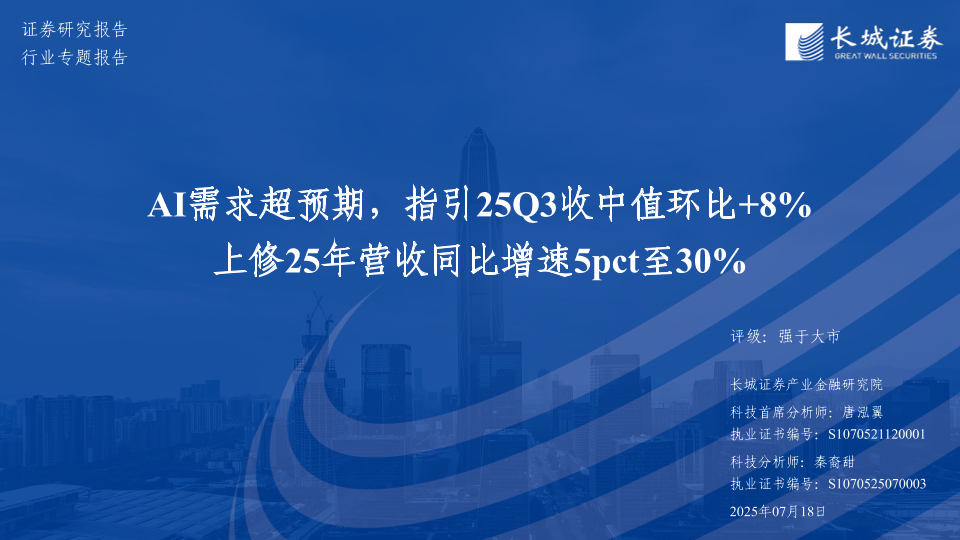 【长城证券】【20250718】AI需求超预期,指引25Q3收中值环比+8%上修25年营收同比增速5pct至30%-22页