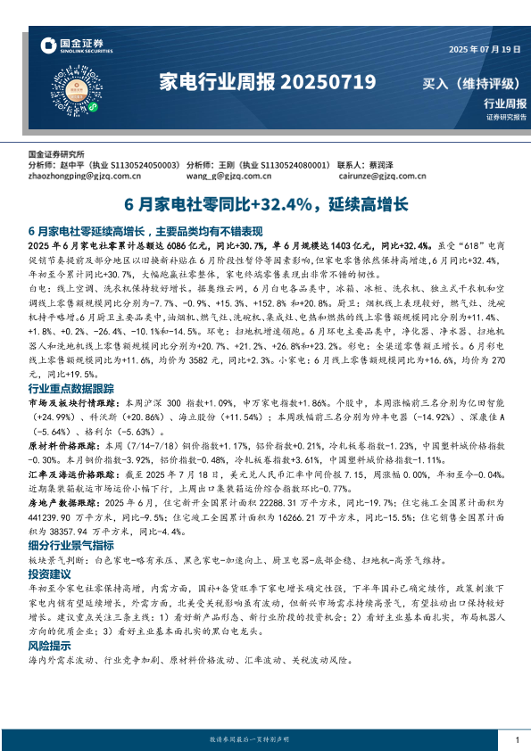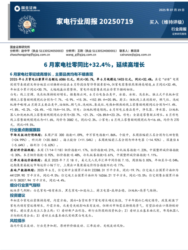 【国金证券】【20250719】家电行业周报:6月家电社零同比+32.4%,延续高增长-12页