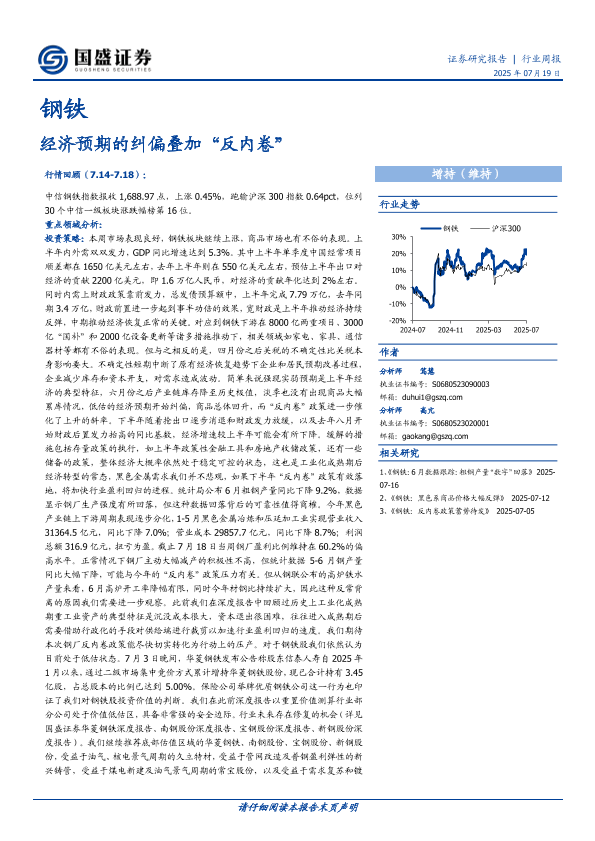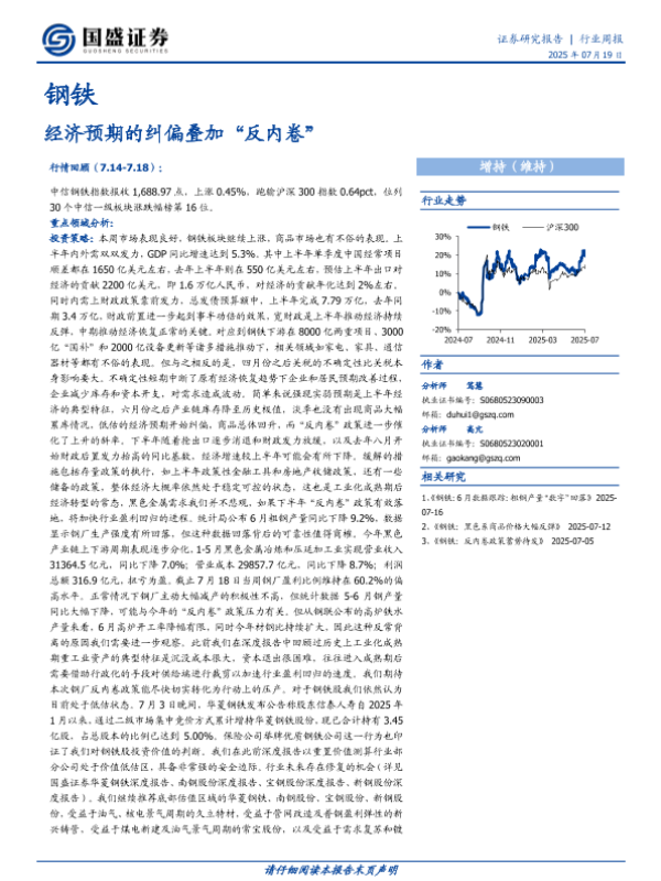 【国盛证券】【20250719】钢铁行业周报:经济预期的纠偏叠加“反内卷”-16页