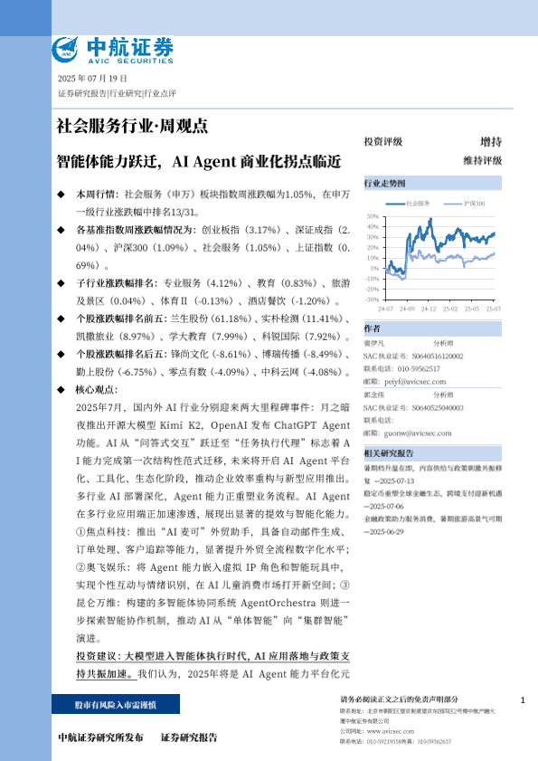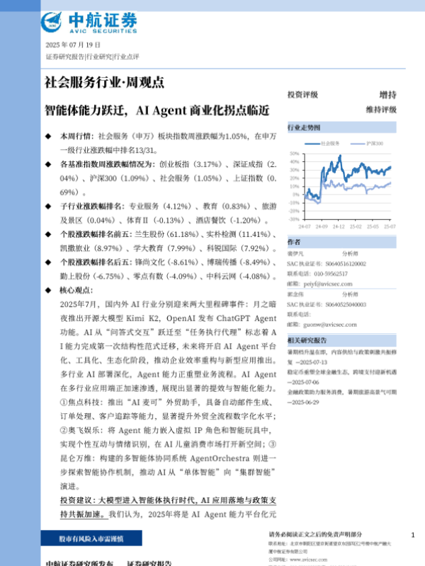 【中航证券】【20250719】社会服务行业·周观点:智能体能力跃迁,AI Agent商业化拐点临近-10页
