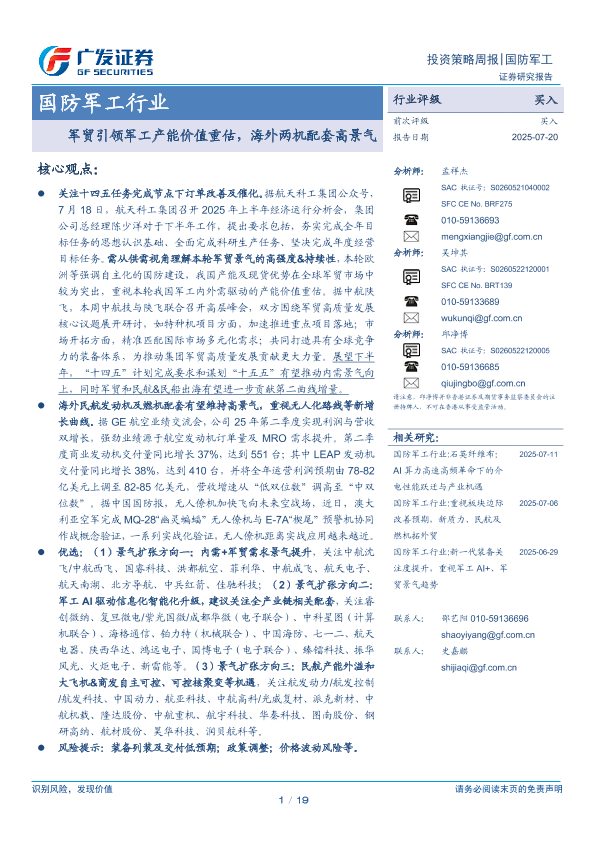 【广发证券】【20250720】国防军工行业:军贸引领军工产能价值重估,海外两机配套高景气-19页