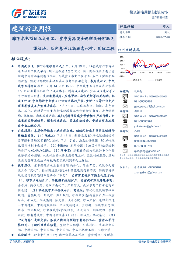 【广发证券】【20250720】建筑行业周报:雅下水电项目正式开工、重申资源安全逻辑看好矿服民爆板块,反内卷关注高股息化学、国际工程-22页