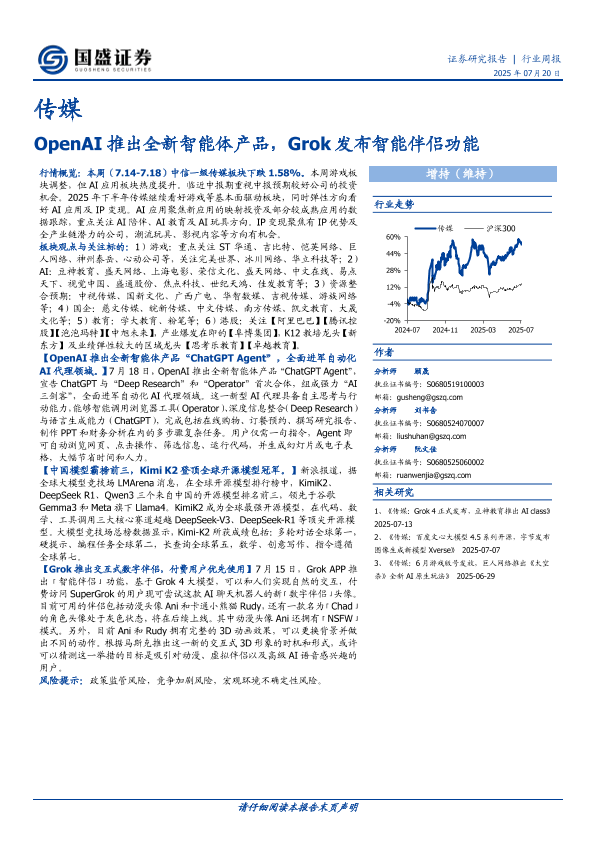 【国盛证券】【20250720】OpenAI推出全新智能体产品,Grok发布智能伴侣功能-10页
