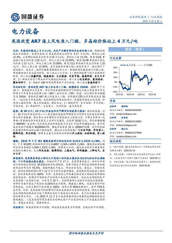 【国盛证券】【20250720】电力设备行业周报:英国放宽AR7海上风电准入门槛,多晶硅价格站上4万元/吨-14页
