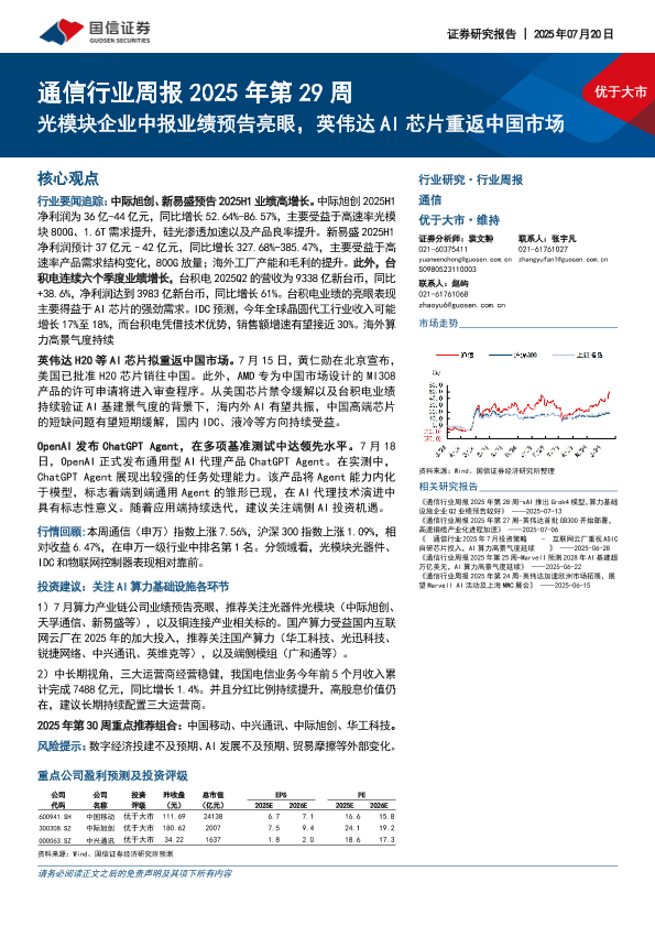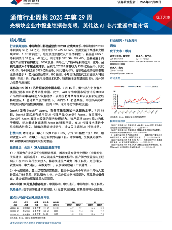 【国信证券】【20250720】通信行业周报2025年第29周:光模块企业中报业绩预告亮眼,英伟达AI芯片重返中国市场-16页