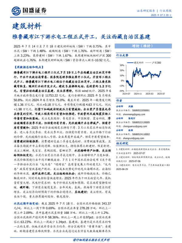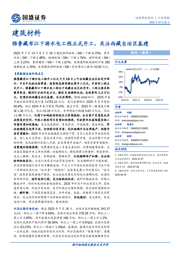 【国盛证券】【20250720】建筑材料行业周报:雅鲁藏布江下游水电工程正式开工,关注西藏自治区基建-17页