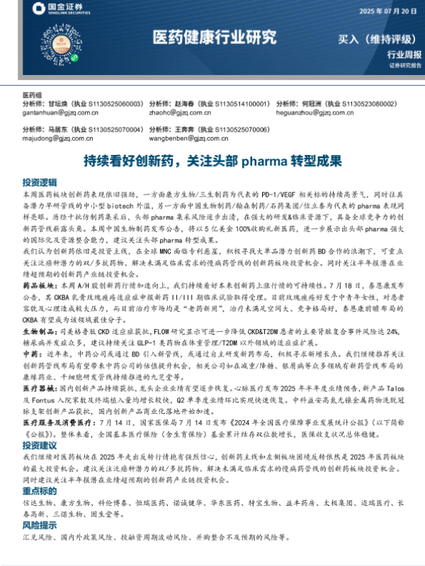 【国金证券】【20250720】医药健康行业研究:持续看好创新药,关注头部pharma转型成果-21页