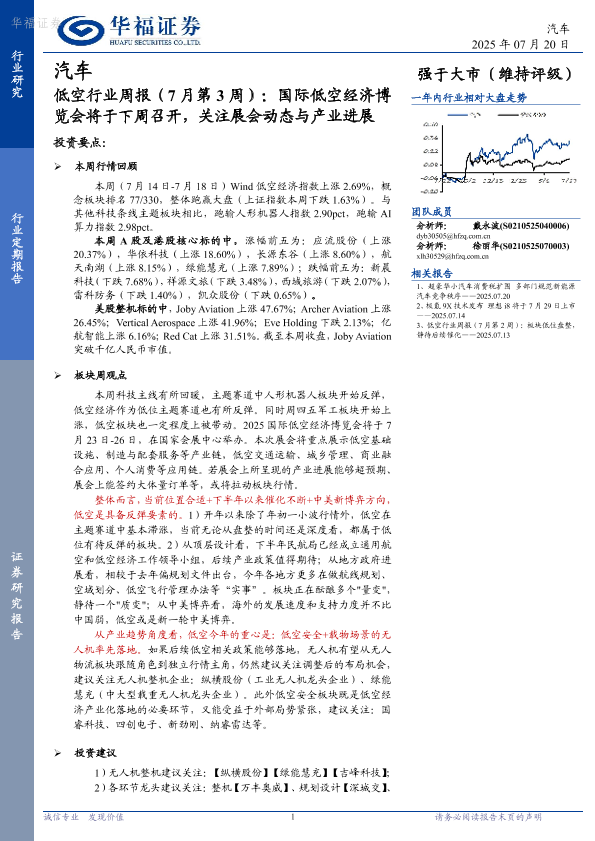 【华福证券】【20250720】低空行业周报(7月第3周):国际低空经济博览会将于下周召开,关注展会动态与产业进展-11页