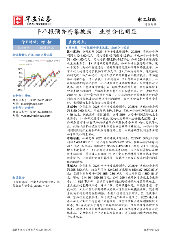 【华安证券】【20250720】轻工纺服行业周报:半年报预告密集披露,业绩分化明显-22页
