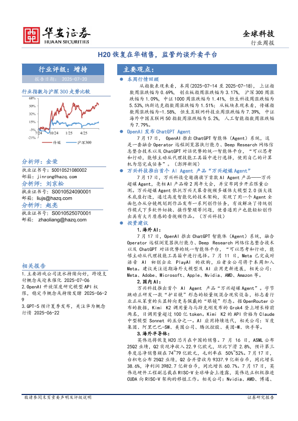 【华安证券】【20250720】全球科技行业周报:H20恢复在华销售,监管约谈外卖平台-28页