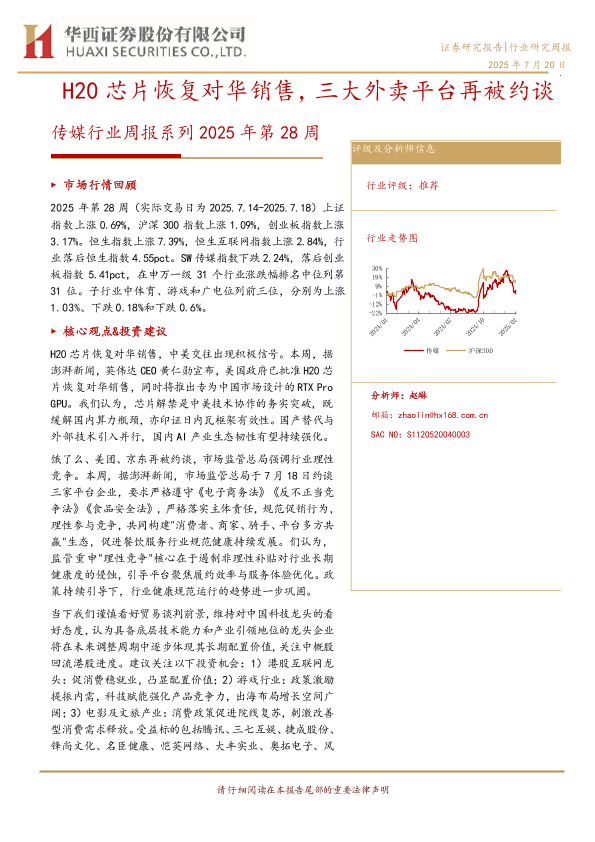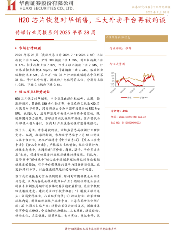 【华西证券】【20250720】2025年第28周:H20芯片恢复对华销售,三大外卖平台再被约谈-14页