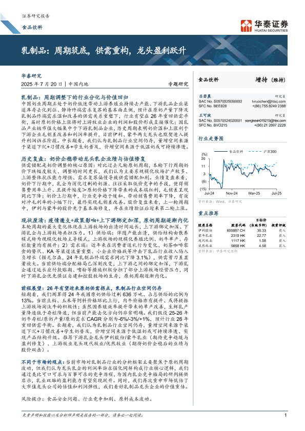 【华泰证券】【20250720】乳制品:周期筑底,供需重构,龙头盈利跃升-30页