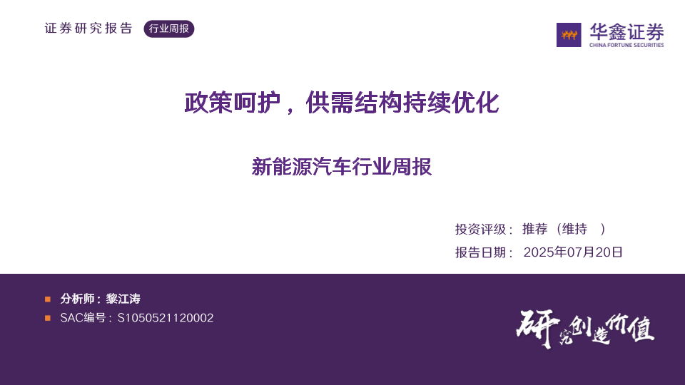 【华鑫证券】【20250720】新能源汽车行业周报:政策呵护,供需结构持续优化-32页