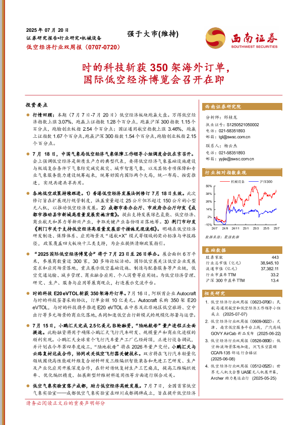 【西南证券】【20250720】低空经济行业双周报:时的科技斩获350架海外订单,国际低空经济博览会召开在即-12页
