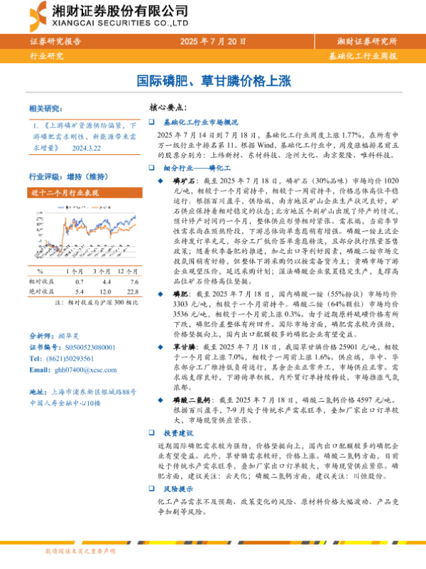 【湘财证券】【20250720】基础化工行业周报:国际磷肥、草甘膦价格上涨-10页