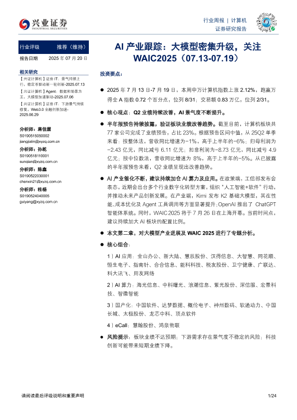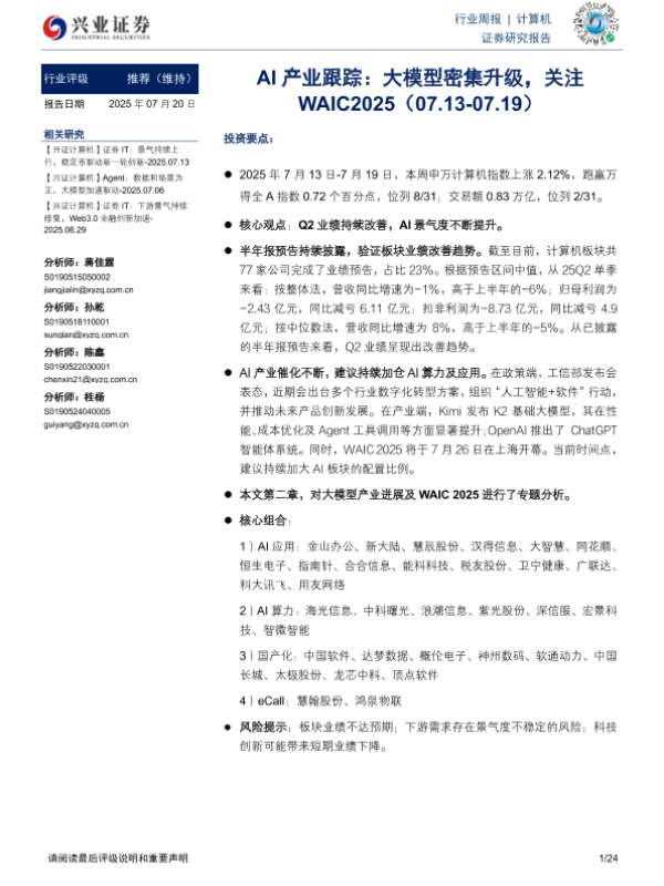 【兴业证券】【20250720】计算机行业周报:AI产业跟踪:大模型密集升级,关注WAIC2025-24页
