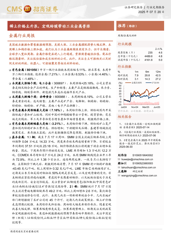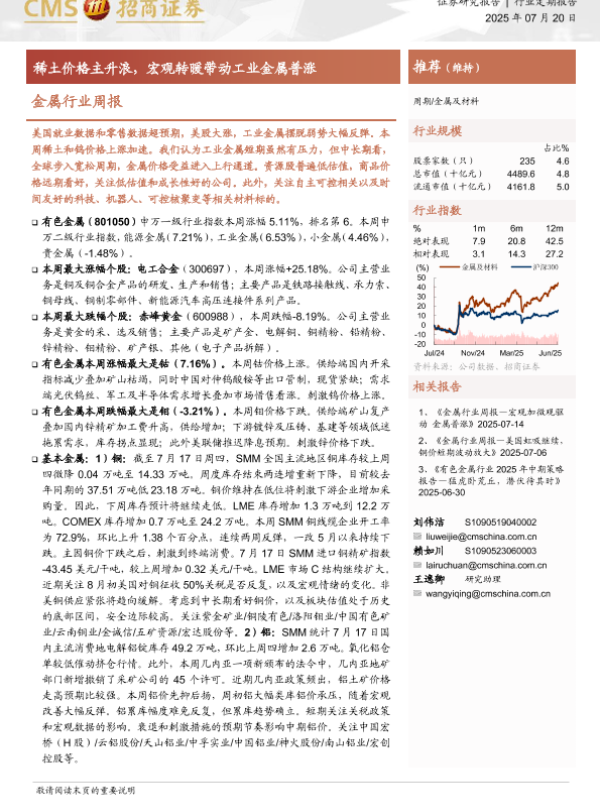 【海通证券】【20250720】金属行业周报:稀土价格主升浪,宏观转暖带动工业金属普涨-16页