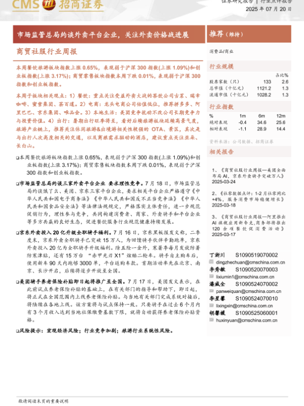【海通证券】【20250720】商贸社服行业周报:市场监管总局约谈外卖平台企业,关注外卖价格战进展-10页