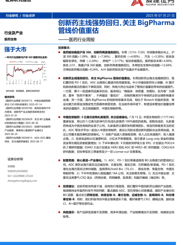 【爱建证券】【20250721】医药行业周报:创新药主线强势回归,关注BigPharma管线价值重估-11页