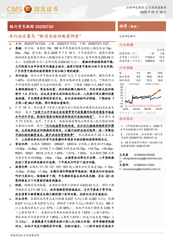 【海通证券】【20250720】银行资负跟踪:央行征求意见“取消冻结回购质押券”-43页