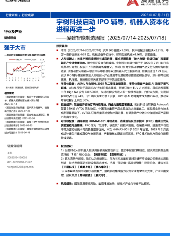 【爱建证券】【20250721】智能制造行业周报:宇树科技启动IPO辅导,机器人资本化进程再进一步-16页