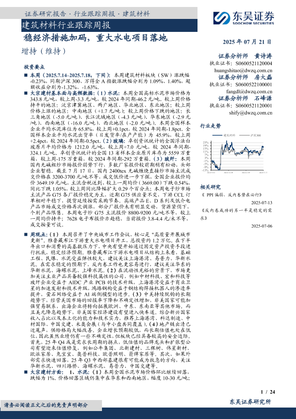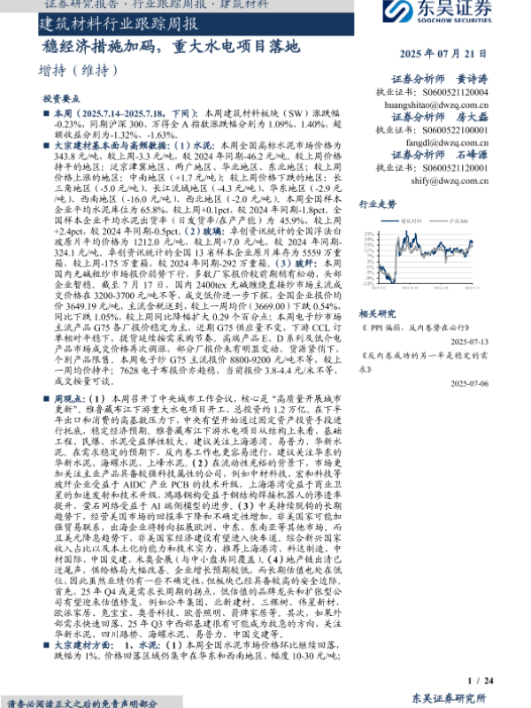 【东吴证券】【20250721】建筑材料行业跟踪周报:稳经济措施加码,重大水电项目落地-24页