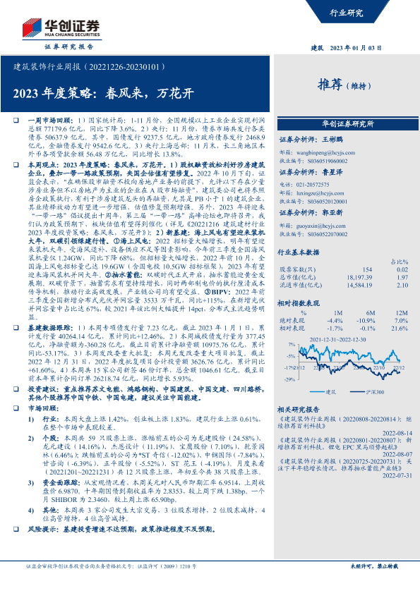 【华创证券】【20230103】建筑装饰行业周报:2023年度策略:春风来,万花开-16页