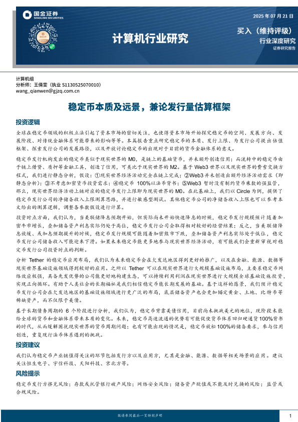 【国金证券】【20250721】计算机行业研究:稳定币本质及远景,兼论发行量估算框架-16页
