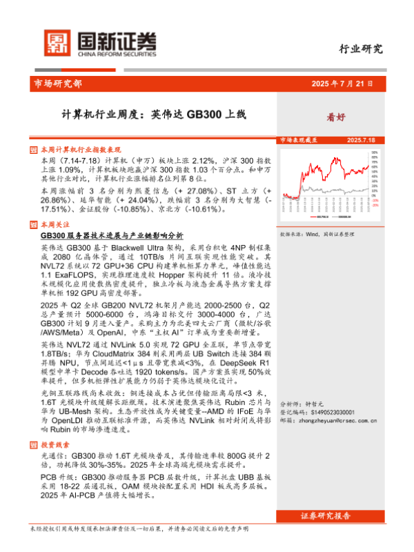 【国新证券】【20250721】计算机行业周度:英伟达GB300上线-13页