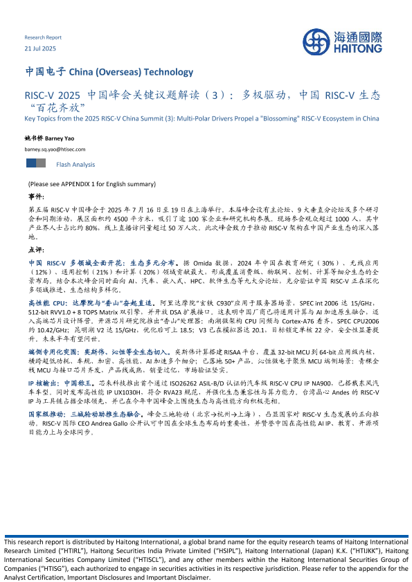 【海通国际】【20250721】RISC-V 2025中国峰会关键议题解读(3):多极驱动,中国 RISC-V生态“百花齐放”-10页