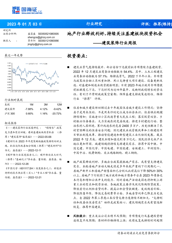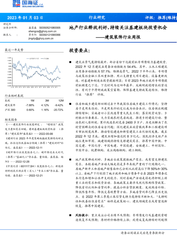 【国海证券】【20230103】建筑装饰行业周报:地产行业释放利好,持续关注基建板块投资机会-14页