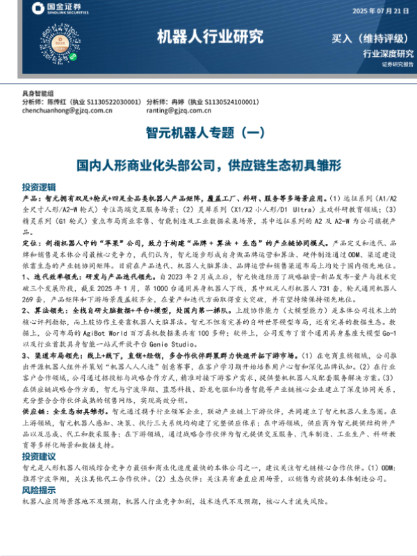 【国金证券】【20250721】智元机器人专题(一):国内人形商业化头部公司,供应链生态初具雏形-35页