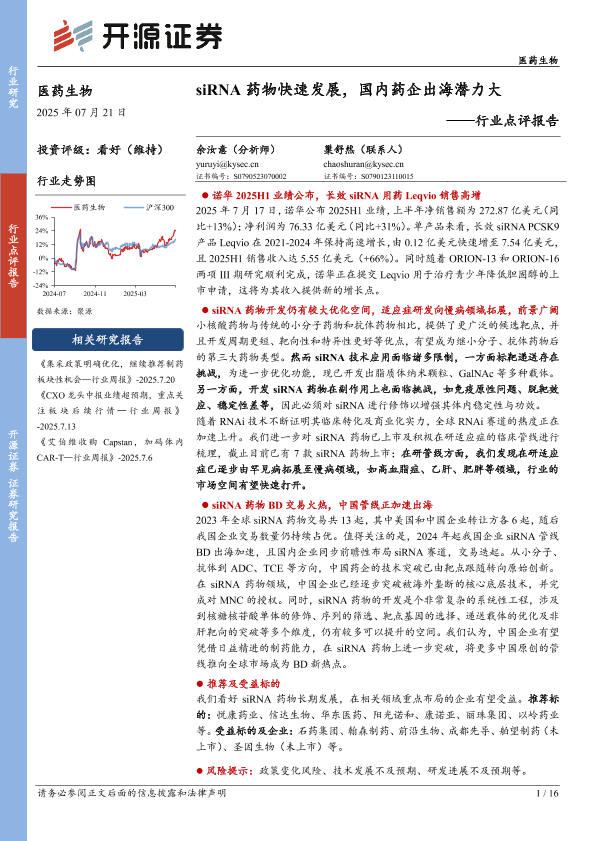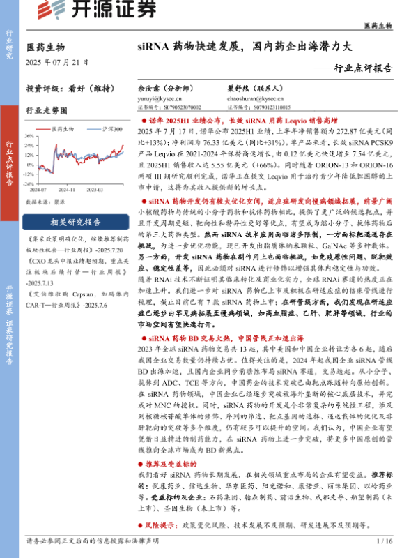 【开源证券】【20250721】siRNA药物快速发展,国内药企出海潜力大-16页